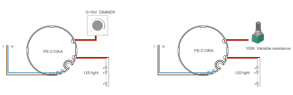 0-10V 1-10V 10vpwm signál rozhraní proud < 0,1mA (100k potenciometr pro pe-c10ra) |