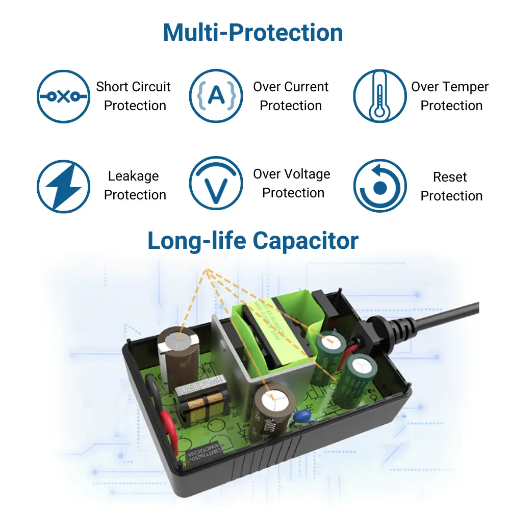 Jeho kompaktní plug-in design šetří místo. Poskytuje stabilní a konzistentní 12W výstupní napájecí adaptér a dokonale se hodí pro routery, síťové přepínače, LED pásky a různá další zařízení.