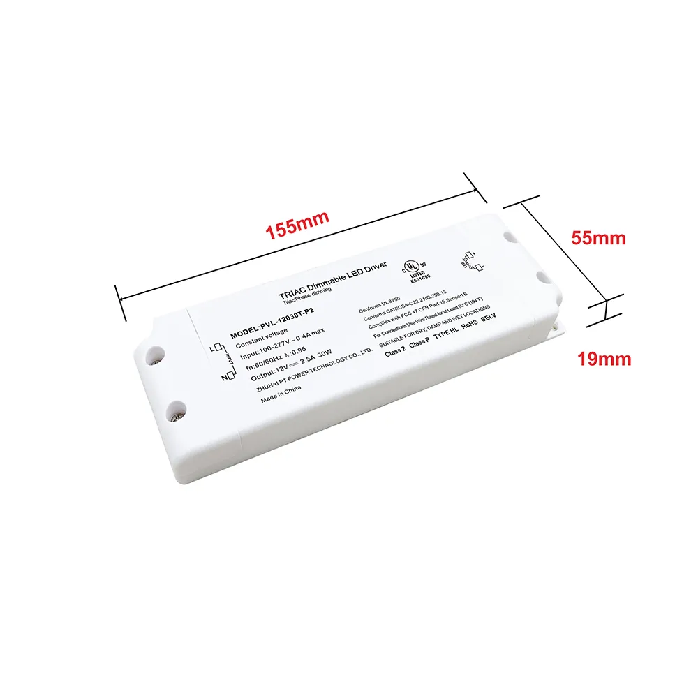 STARWELL 12V 2,5A 30W Constant Voltage Triac Dimming Led Driver, speciálně navržený pro LED svítidla ve venkovním/vlhkém prostředí, kompatibilní s 30W pouličním osvětlením, zahradními světly, podvodními světly, reklamními světelnými boxy a dalšími různými scénáři. Vodotěsná úroveň, která je vybavena technologií vodotěsného těsnění IP67 + technologií vodotěsného zalévání, nedosahuje žádného úniku po dobu 30 minut v hloubce 1 metru pod vodou, je schopna vyrovnat se s drsným prostředím, jako je déšť, stříkající voda a prach, s nepřetržitou životností venku více než 50 000 hodin, díky čemuž je Triac Dimming Led Driver spolehlivější pro dlouhodobé používání.