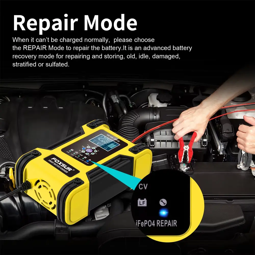 Funkce inteligentní opravy: Vestavěný pulzní režim desulfatace pomáhá obnovit sulfatované baterie a obnovit ztracenou kapacitu.