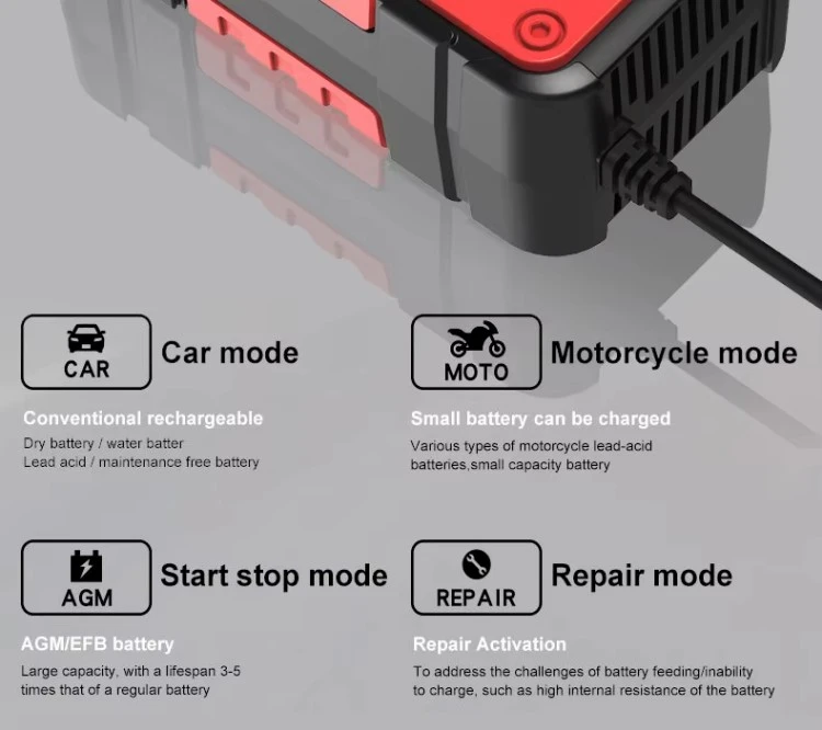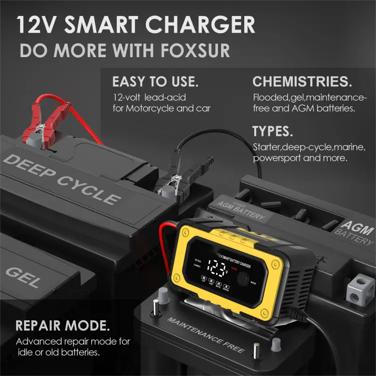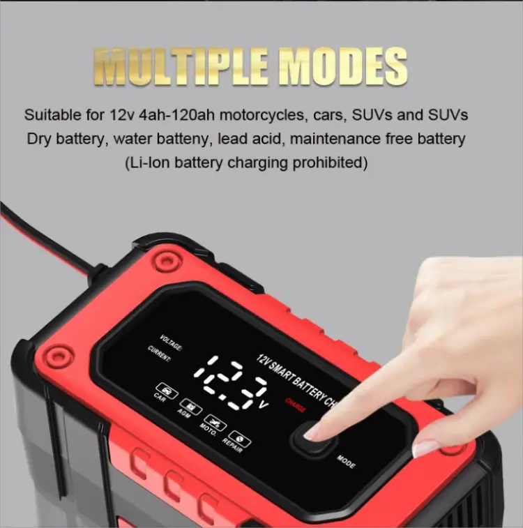 Starwell, profesionální výrobce a dodavatel inteligentních nabíječek baterií z Číny, představuje 12V 6A plně inteligentní automatickou nabíječku baterií pro opravy, špičkové zařízení navržené tak, aby vyhovovalo potřebám nabíjení různých olověných baterií. Ať už potřebujete nabíjet autobaterie, motocykly, čtyřkolky, zahradní traktory nebo dokonce lodě, tato nabíječka je nezbytným nástrojem pro bezproblémový chod vašich vozidel. Díky své pokročilé technologii a multifunkčním schopnostem nabízí tato nabíječka více než jen typické řešení nabíjení.