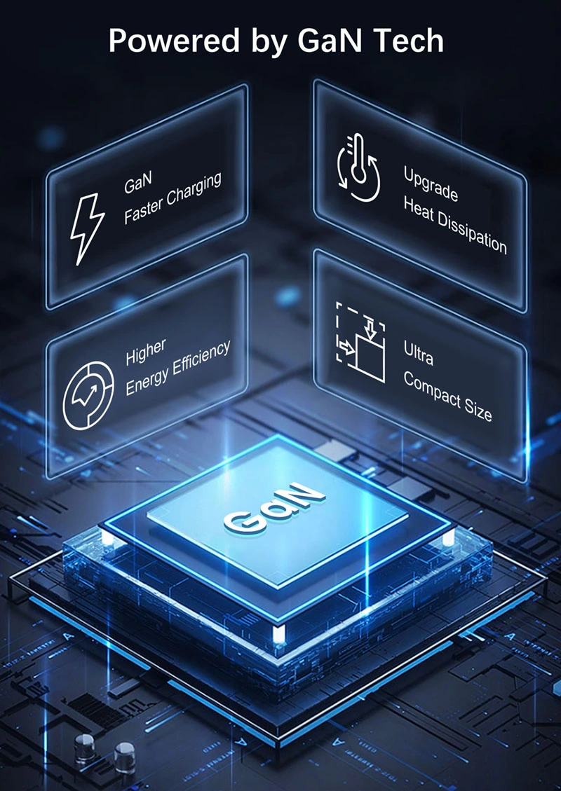 Vysokorychlostní nabíjení: GAN 200W zatahovací rychlonabíječka se může pochlubit silným výkonem 200 wattů a zajišťuje rychlé nabíjení vašich zařízení.