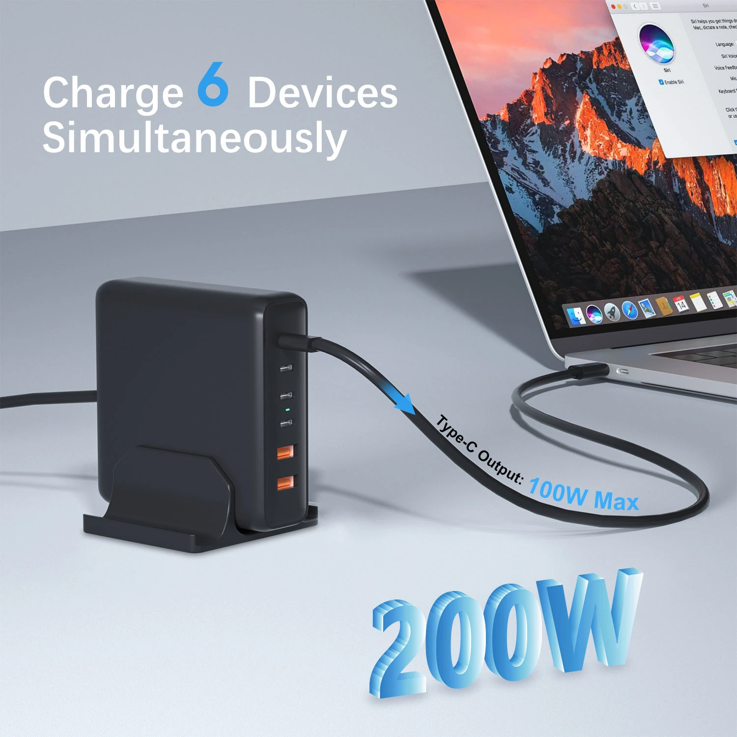 200W stolní PD nabíječka se 6 porty typu c, 200W rychlá nabíječka GAN Vyrábí Shenzhen Starwell Technology Co., Ltd. Čínská velmoc ve výrobě s vysokou kvalitou za dostupné ceny.