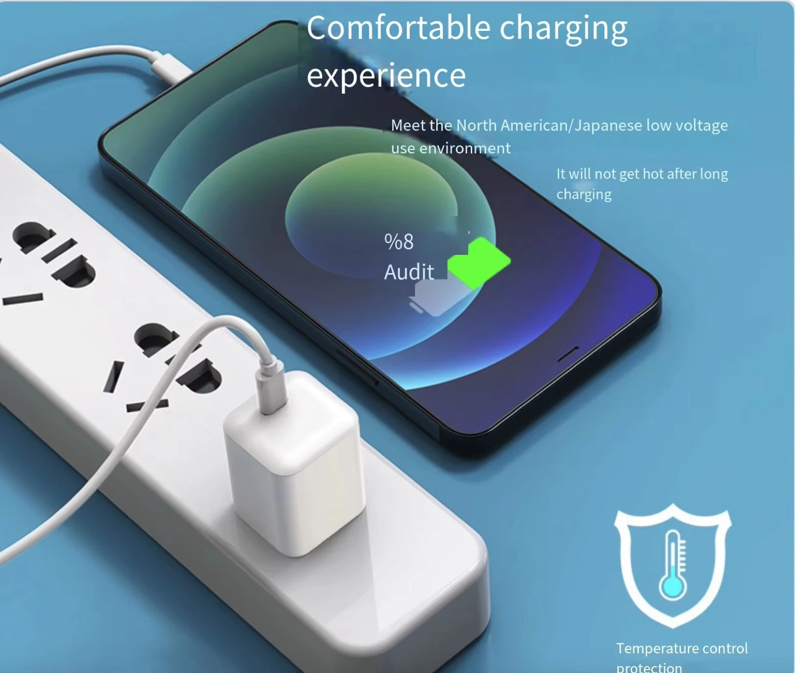 Vysoce kvalitní 20W rychlonabíječka STARWELL Japan Plug Quick Charger, nazývaná také 20W PD rychlá nabíječka s porty USB-C a Type-C, podporuje rychlé nabíjení pro iPhone a zařízení Android s dosažením 0–50 % za 30 minut. Vyznačuje se několika ochranami včetně nadproudu, přepětí a zkratu, což zajišťuje bezpečný a spolehlivý výkon. Vyrobeno z PC ohnivzdorného materiálu, splňuje CE a ETL certifikace, nabízí shodu s bezpečnostními normami EU a zlepšuje přístup na trh.