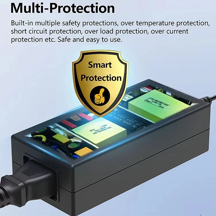 Odolný 24V 7,5A univerzální stolní napájecí adaptér Starwell se vyznačuje vysokou účinností konverze, minimálním zvlněním a šumem a vynikající regulací napětí při různé zátěži. Pouzdro zajišťuje efektivní odvod tepla a dlouhou životnost. Komplexní ochranné obvody chrání proti přepětí, nadproudu, zkratu a přehřátí, čímž zvyšují bezpečnost zařízení a uživatelů.