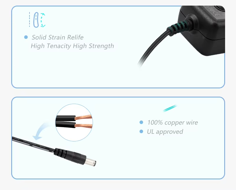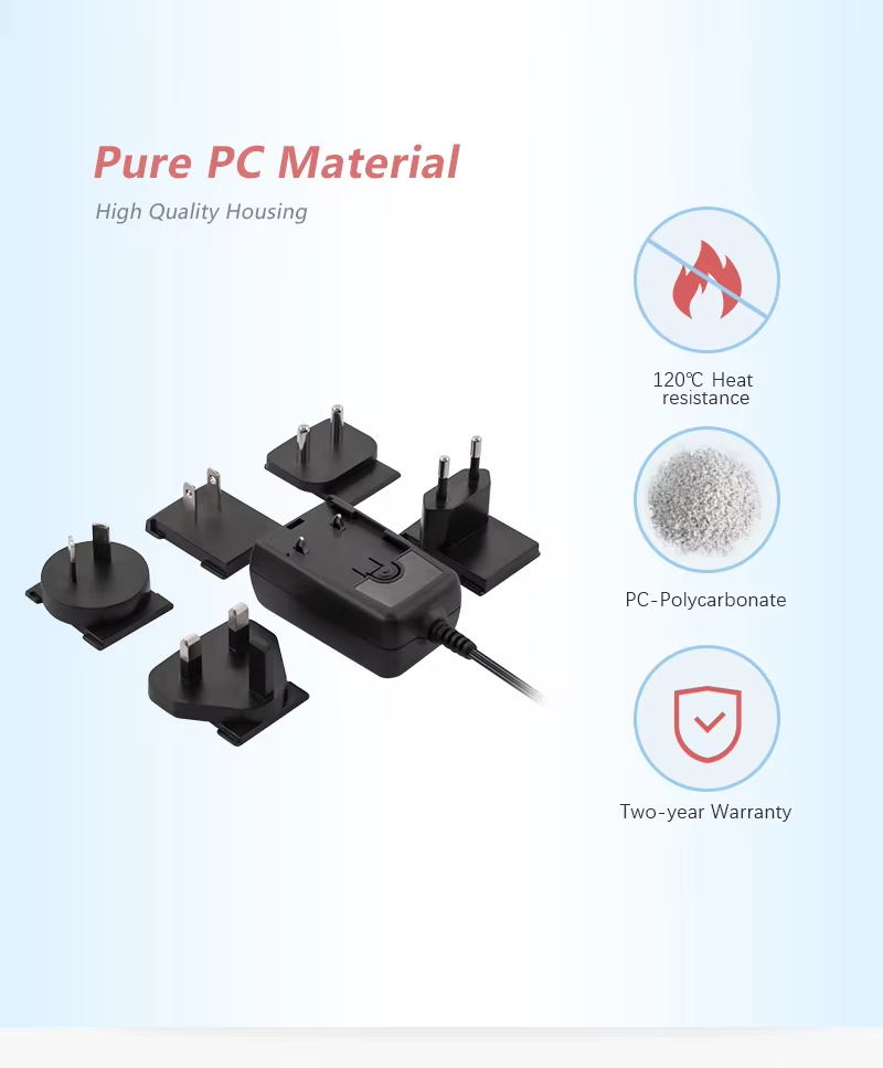 Efektivní a stabilní zdroj napájení: Jako vysoce výkonný 24W napájecí adaptér využívá pokročilou technologii napájení s výměnnou zásuvkou Switching pro dosažení efektivní konverze. Dokáže stabilně převádět střídavý proud na stejnosměrný proud (AC/DC napájecí adaptér s výměnnou zástrčkou), čímž poskytuje nepřetržitou a čistou energii pro vaše zařízení.