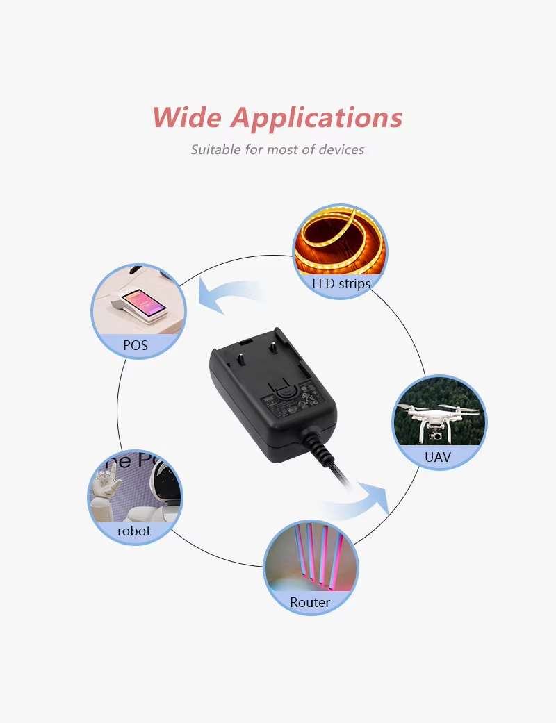 Široká škála aplikačních scénářů: Ať už se jedná o napájení LED světelných pásků, chytrých reproduktorů, síťových směrovačů nebo jiných malých elektrických spotřebičů, tento výkonný přepínací napájecí zdroj s výměnnou zástrčkou je vaší nejideálnější a nejbezpečnější volbou!