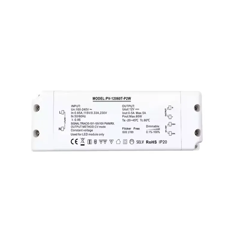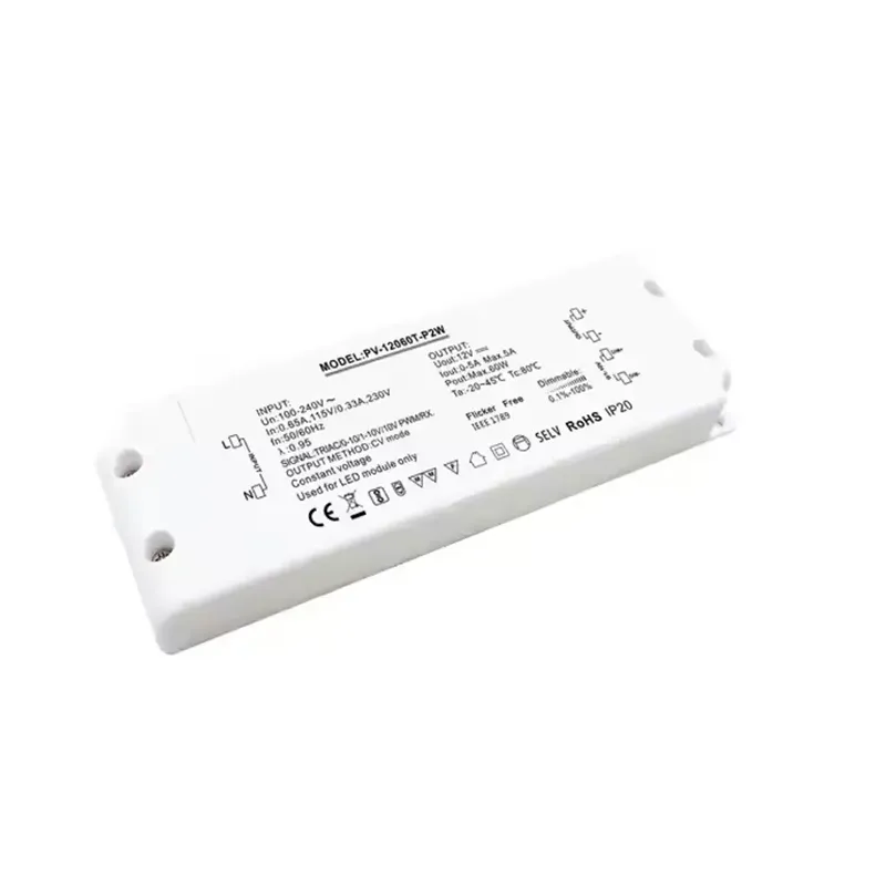 60W ultratenký triakový stmívatelný LED ovladač s konstantním napětím