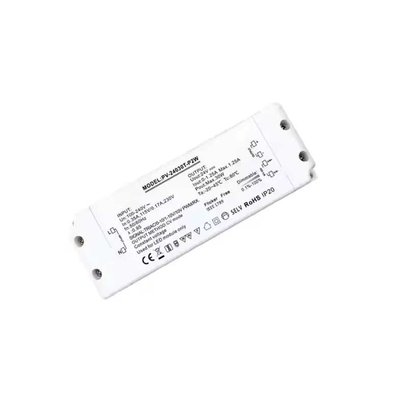 TRIAC 0-10V stmívatelný 30W zdroj konstantního napětí, Starwell nabízí 5letou záruku pro dlouhodobé zajištění kvality. Všechny jeho základní komponenty jsou vyrobeny podle průmyslových standardů a vyznačují se vynikající odolností proti přepětí, odolností vůči vysokým teplotám a dlouhodobou provozní spolehlivostí. Tento 30W stmívací LED ovladač s konstantním napětím TRIAC, který integruje duální stmívání, výstup konstantního napětí, technologii bez blikání a dlouhou životnost, je vynikající volbou pro ty, kteří hledají vysoce kvalitní světelné efekty. Vítejte na dotaz.