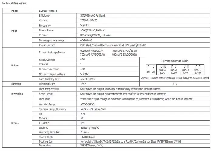 Jako profesionální výrobce a dodavatel LED driveru v Číně je náš 30W Triac stmívací LED driver s konstantním proudem zařízení pro konverzi energie navržené speciálně pro středně až vysoce výkonné LED osvětlovací systémy. Přijímá pokročilou technologii řízení konstantního proudu, která zajišťuje stabilní provoz LED korálků při jmenovitém proudu, účinně prodlužuje životnost lampy a zlepšuje konzistenci světelné účinnosti. Ovladač LED se stmíváním konstantního proudu je vhodný pro vysoce náročné scénáře osvětlení, jako je komerční osvětlení, průmyslové osvětlení, venkovní světlomety a osvětlení pro růst rostlin.