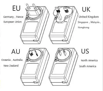 * Univerzální zástrčky: US/EU/AU/UK/JP a další