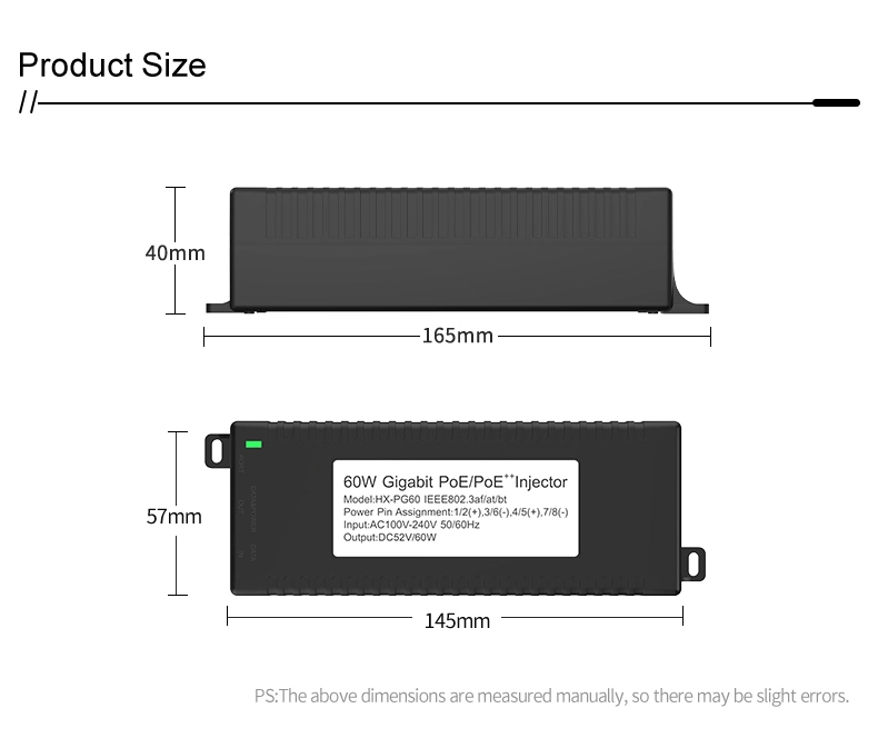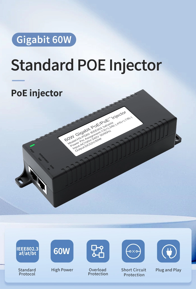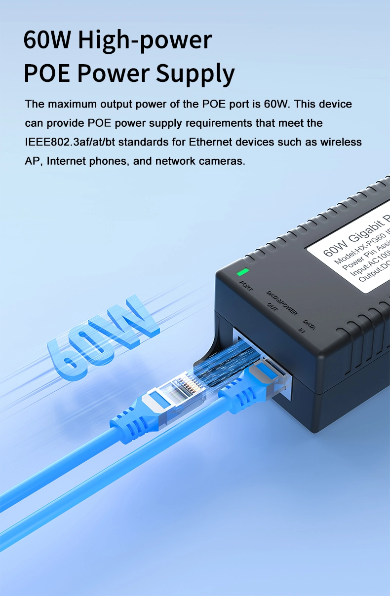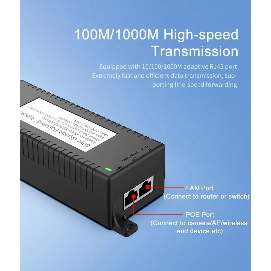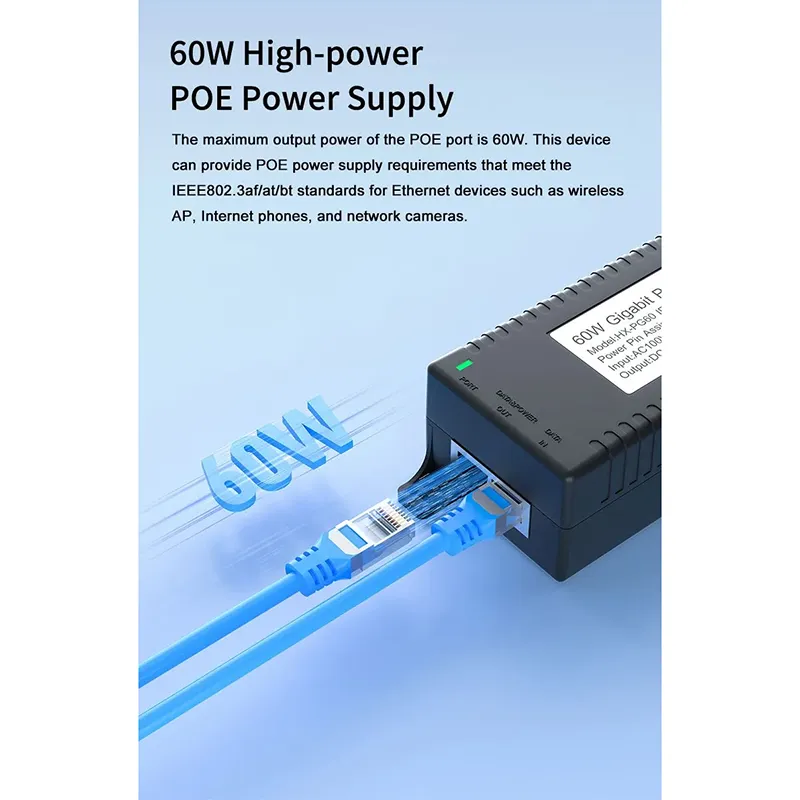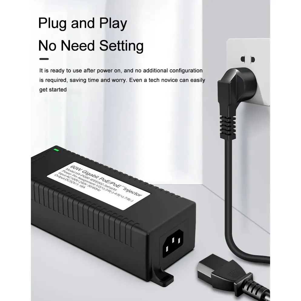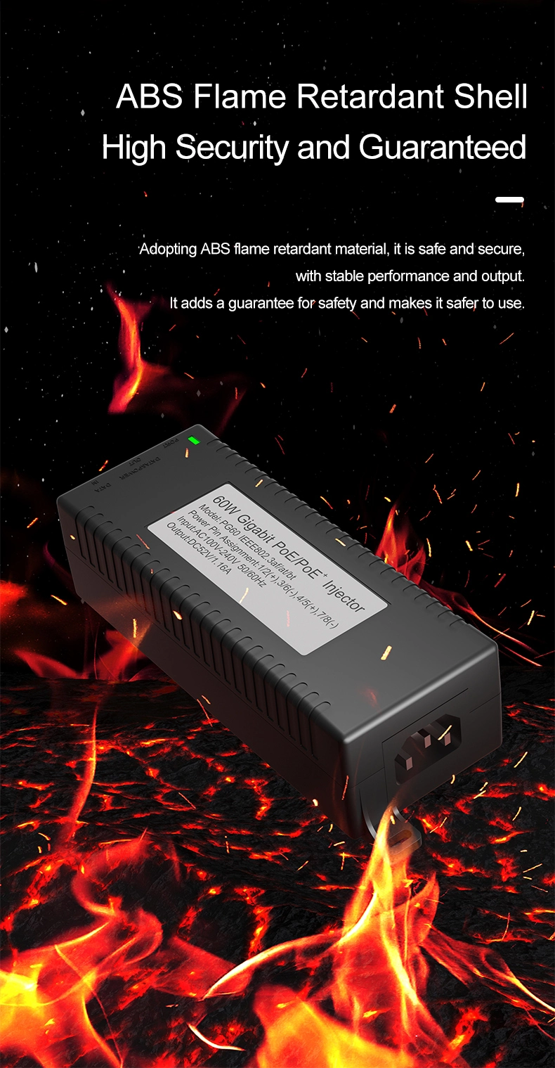 Security Surveillance: Gigabitový 60W stolní POE injektor pro zabezpečení IP kamer a síťová zařízení poskytuje stabilní napájení IP kamer a PTZ kamer.