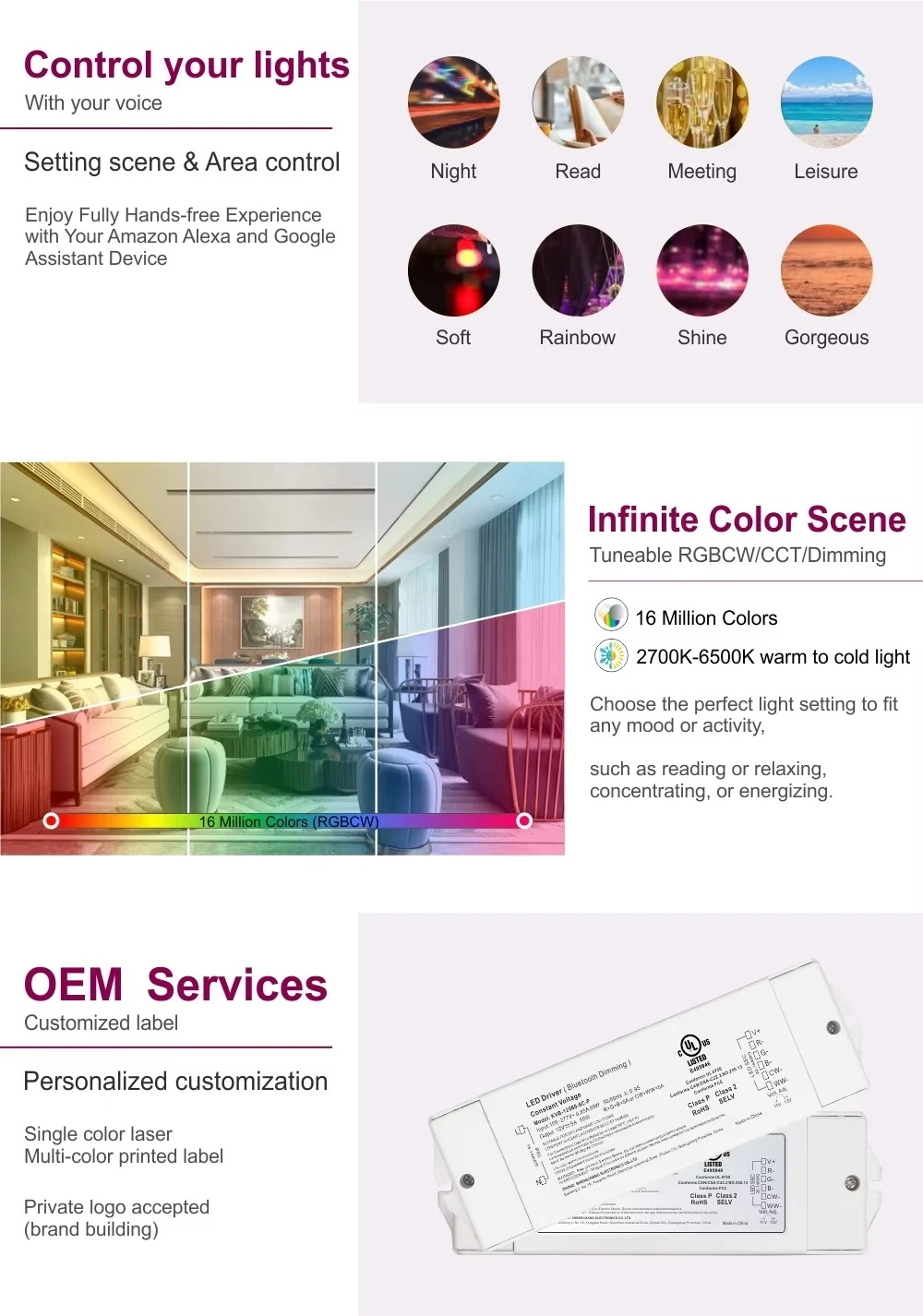EN61347-1; EN61347-2-13 UL8750 CAN/CSA-C22.2 č. 250.13 |