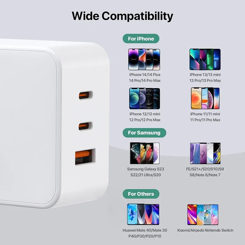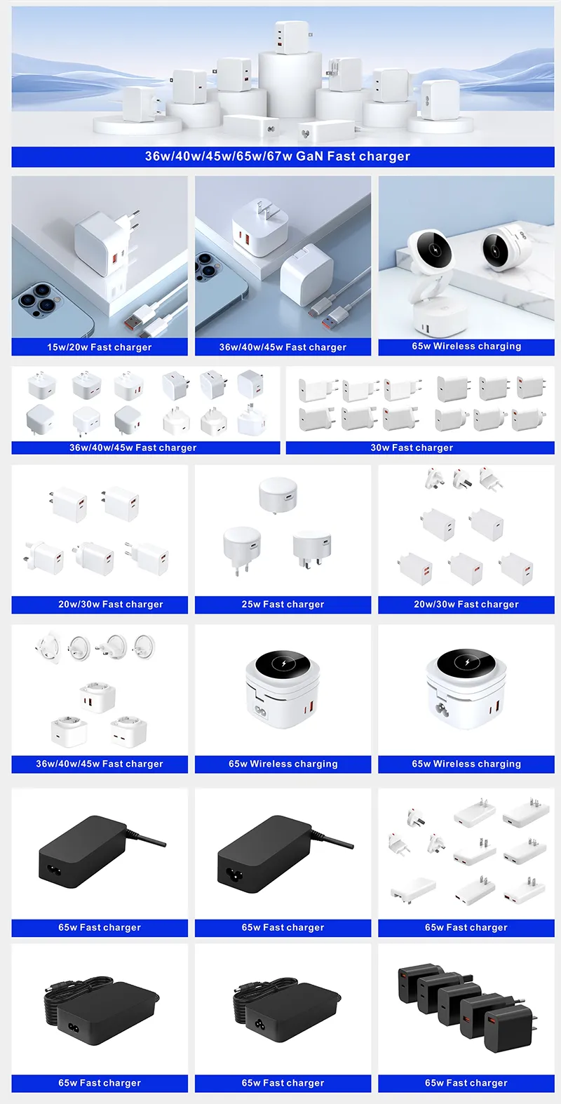 Tato nabíječka poskytuje konzistentní výkon až 65 W a efektivně nabíjí notebooky (např. MacBook Air/Pro, Dell XPS), tablety, smartphony (iPhone, Samsung Galaxy) a další zařízení, která podporují protokol PD. Jeho kompaktní a lehká konstrukce jej předurčuje na cesty, zatímco vestavěná přepěťová, nadproudová a zkratová ochrana zajišťuje bezpečné nabíjení nabíječky a připojených zařízení. Obvykle je vybaven 1-2 USB-C rozhraními, které podporuje nabíjení více malých zařízení současně, vyvážení výkonu a pohodlí.