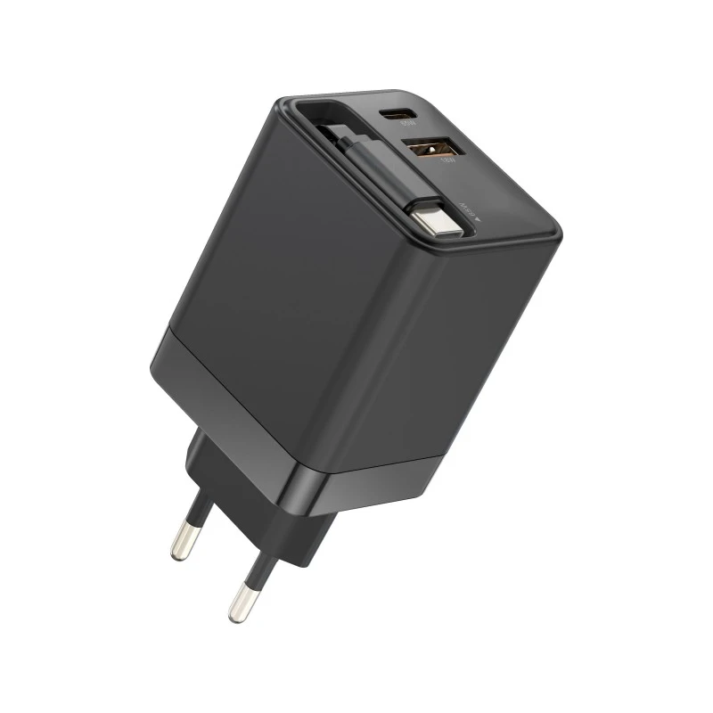 Jeho jediný port USB-C poskytuje maximální výkon pro rychlé nabíjení vašeho notebooku, smartphonu, tabletu a dalších nezbytných zařízení. Univerzální, skládací US zástrčka zajišťuje elegantní profil vhodný do kapsy, zatímco výměnné zástrčky (US, EU, UK) jsou k dispozici pro splnění různých regionálních norem, všechny s plnou certifikací pro bezpečné a spolehlivé použití po celém světě.