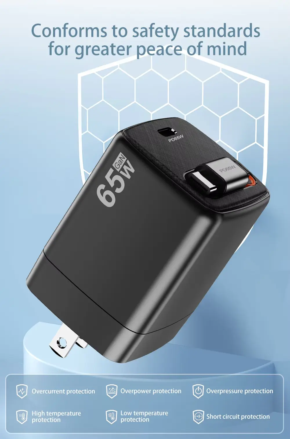 Přizpůsobitelné logo Mini 65W PD Gan USB C nabíječka Skládací US zástrčka USB cestovní adaptér Nabíječka telefonu |