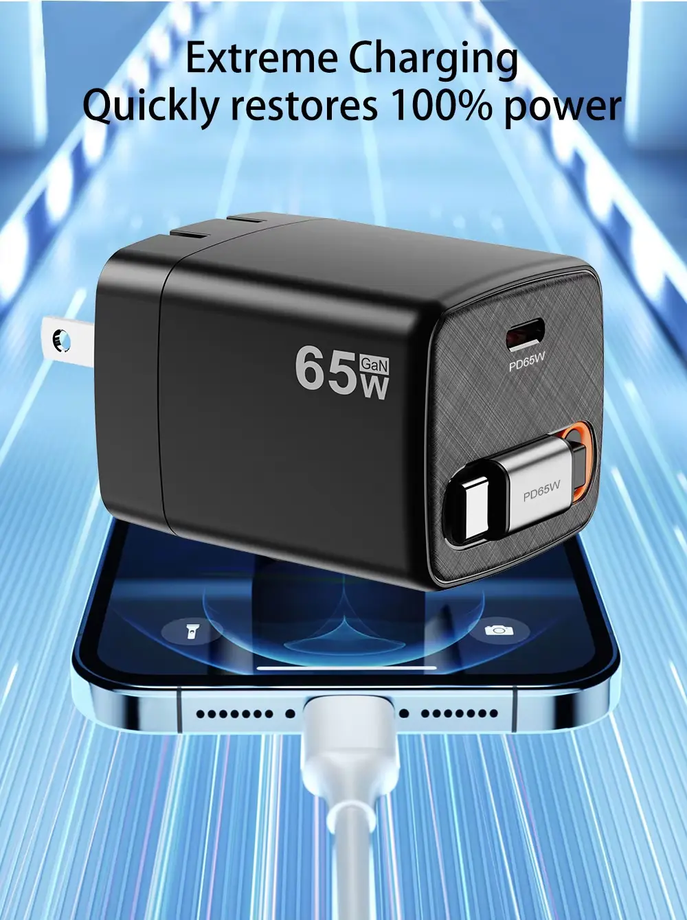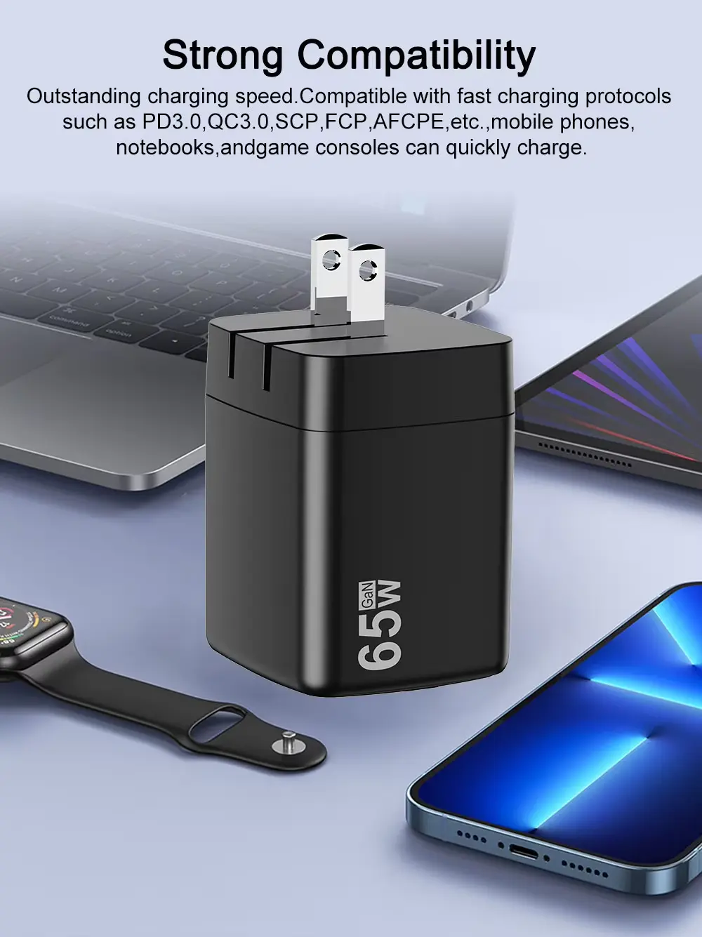 Vysokorychlostní 65W nabíjení: Napájí notebooky a rychle nabíjí telefony.
