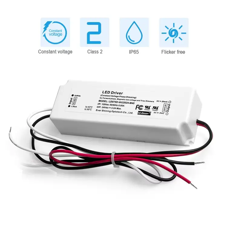 Jako profesionální výrobce by vám společnost Starwell ráda poskytla vysoce kvalitní 75W Triac Dimming Led Driver s konstantním napětím, což je univerzální 75W TRIAC stmívatelný napájecí zdroj pro LED osvětlení. Užijte si snadné ovládání osvětlení spárováním tohoto konstantního napěťového ovladače se stmívači TRIAC, které již máte doma. Poskytuje plynulé stmívání bez blikání a eliminuje problémy s kompatibilitou. 75W LED ovladač je ideální pro vytvoření atmosféry se stmívatelnými LED páskami, osvětlením skříněk, osvětlením výklenků a nízkonapěťovými dekorativními svítidly.