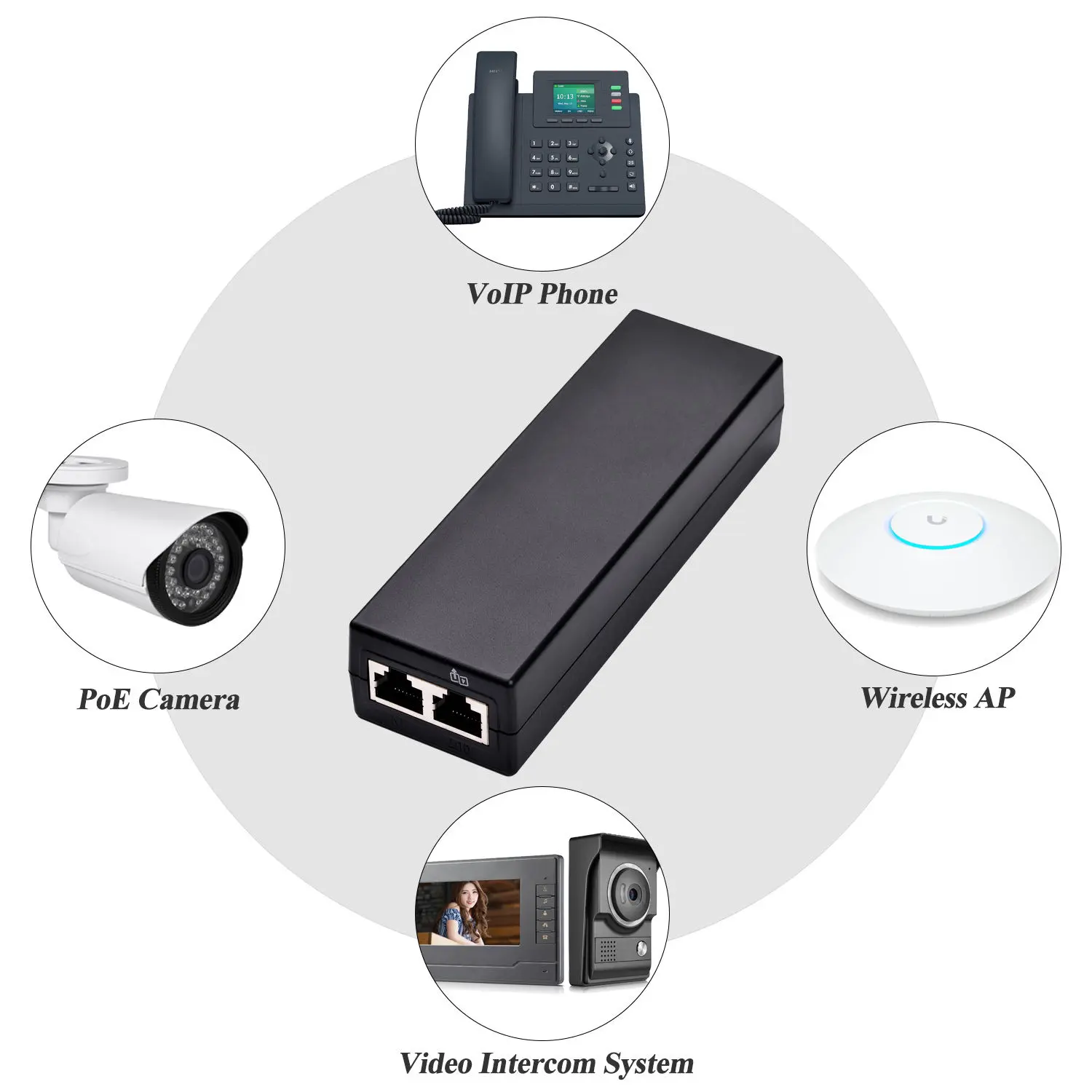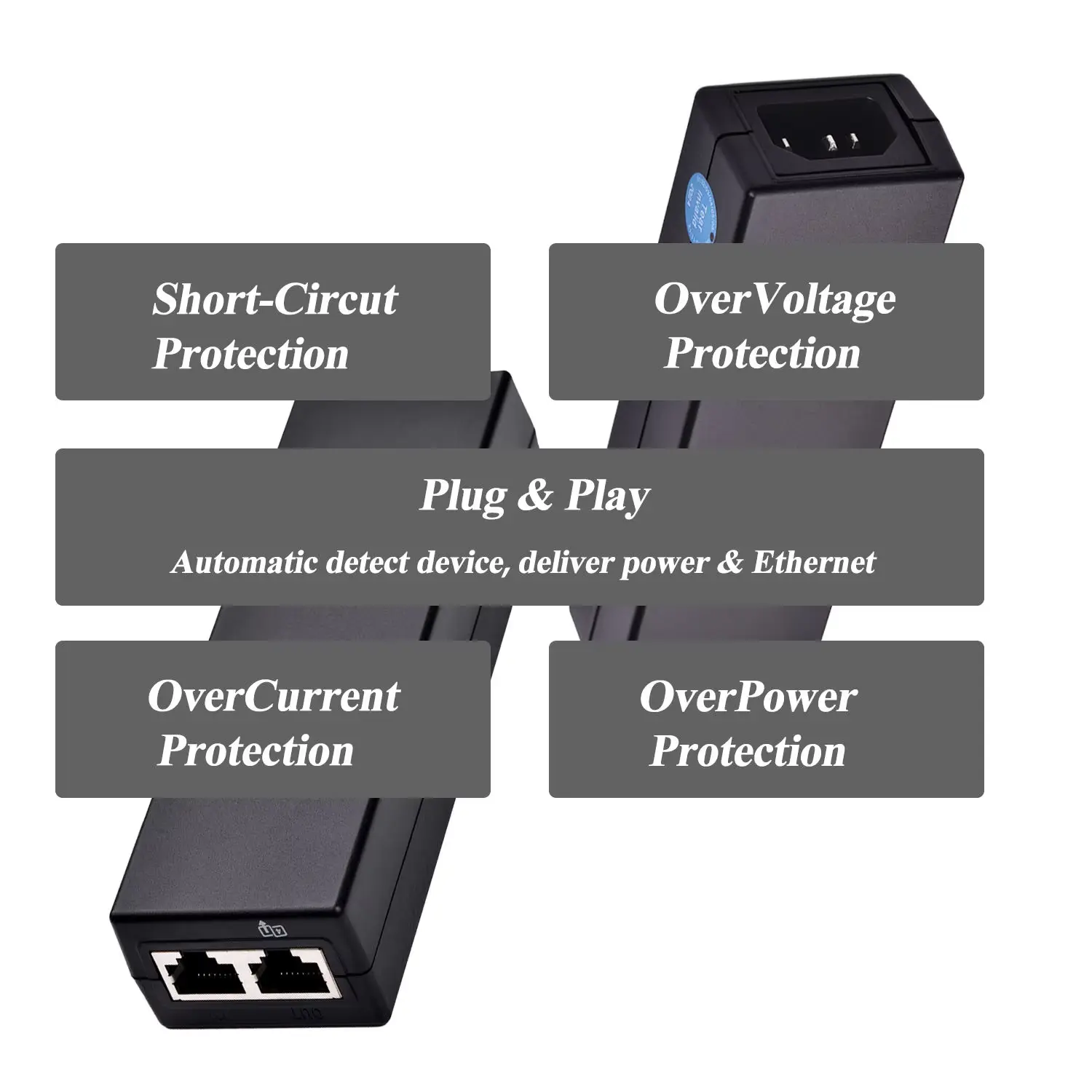 Vysoký výstupní výkon: Podporuje výstup až 30 W, efektivně napájí a připojuje síťová zařízení, jako jsou IP kamery, bezdrátové AP a VoIP telefony.