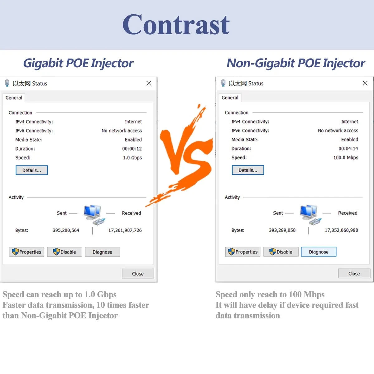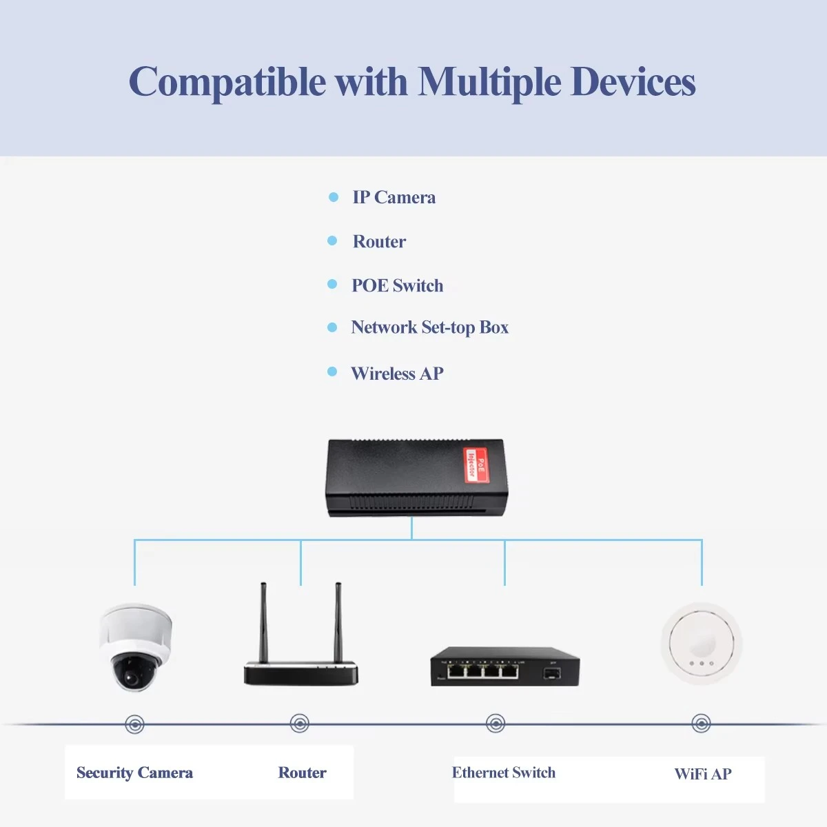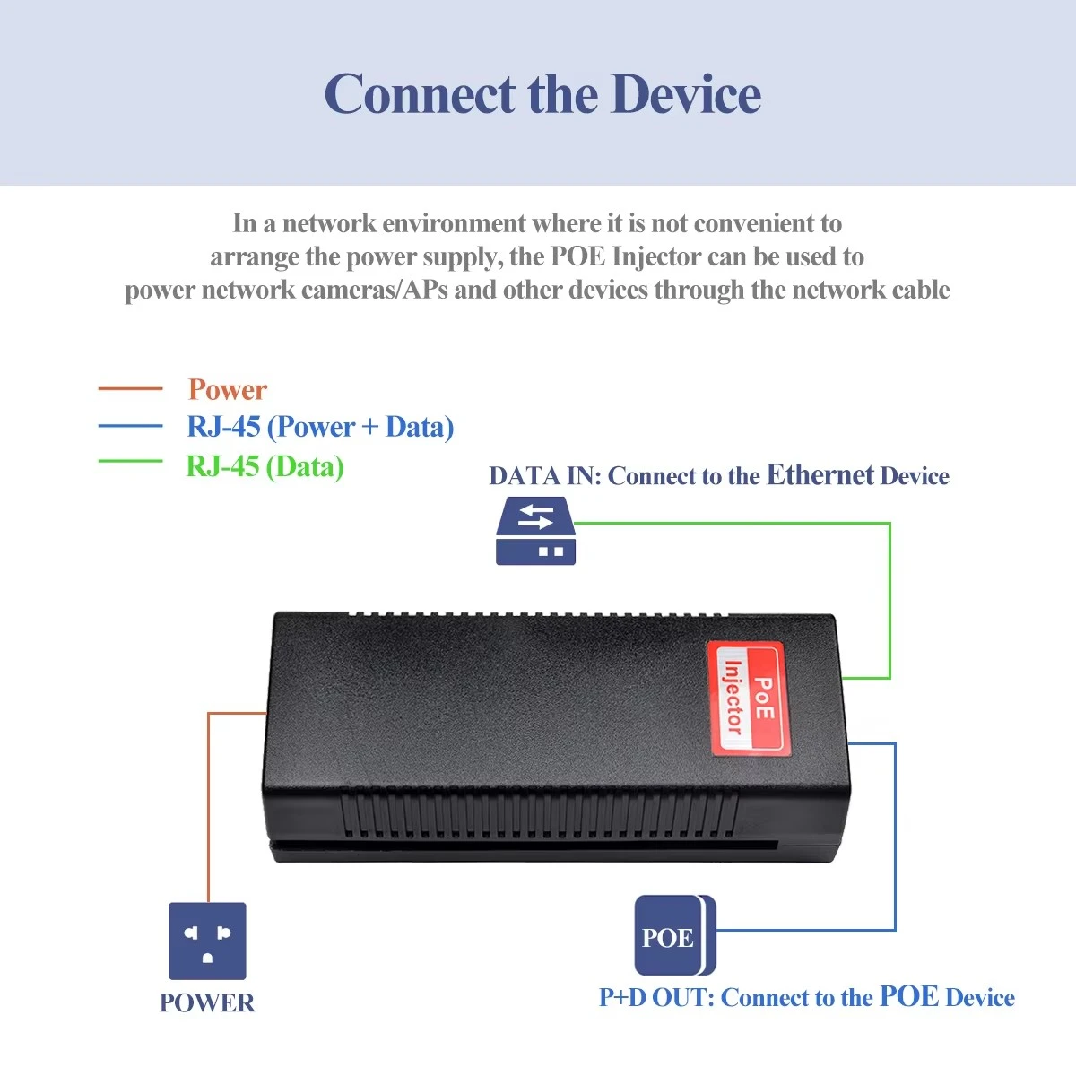 * PIN POE: 1,2+/3,6- 4,5+/7,8- * Automatická detekce a ochrana nestandardních ethernetových terminálů * Podporuje 10/100/1000Base-T LAN prostředí * Jedinečná funkce blokování pro snadnou instalaci