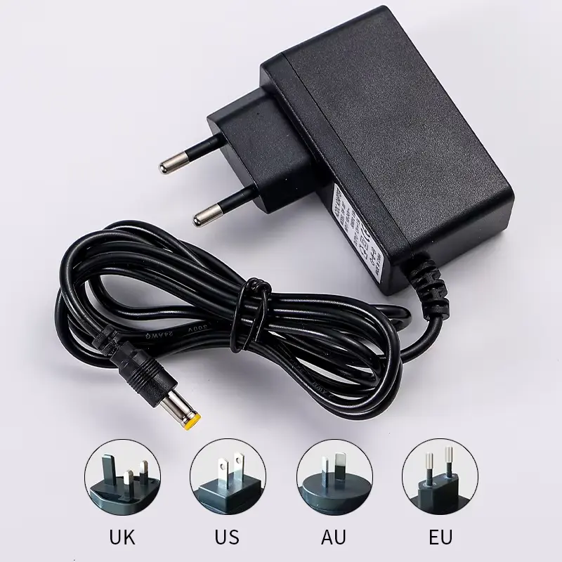 Jeho provedení pro montáž na stěnu šetří místo a eliminuje změť kabelů připojením přímo do zásuvky. Pro snadné připojení je k dispozici standardní výstupní stejnosměrný kabel s běžným konektorem (např. 5,5 mm x 2,1 mm válcová zástrčka, typicky kladný střed).