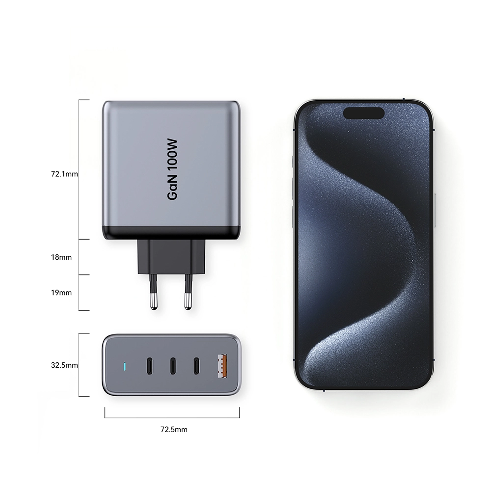 Rychlá nabíječka GAN 100W pro notebook CE Nabíjejte rychle více zařízení současně, abyste udrželi svůj pracovní prostor uklizený a organizovaný. Odolná 100W rychlá nabíječka Starwell GaN je vybavena třemi porty USB-C a jedním portem USB-A, což umožňuje napájet až čtyři zařízení současně. Ať už pro firemní nebo domácí použití, zvládne úkoly snadno. Od vašeho notebooku, mobilního telefonu, tabletu až po chytré hodinky, vše se dá dohromady plně nabít a nakonec skončí éra obsazení zásuvky. To přináší jednoduchost a vysokou efektivitu na váš stůl.