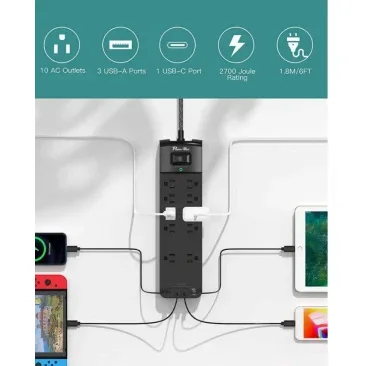 - NěkteříPower StripsPřijďte s ochranou přepětí, která pomáhá chránit připojená zařízení před poškozením způsobeným náhlými hroty napětí nebo přepětí v elektrickém přívodu.