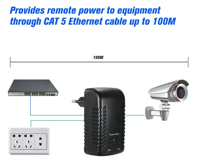 Tento nestandardní nástěnný ethernetový adaptér, navržený podle standardu 48V IEEE 802.3af, poskytuje stabilní výstupní výkon 15 W, plně podporuje většinu IP kamer napájených POE, které obvykle vyžadují 15-25W (kromě modelů PTZ s vysokým výkonem). Spolehlivě funguje také s IP telefony a dalšími zařízeními vyhovujícími standardům 802.3af nebo 802.3at POE a nabízí širokou kompatibilitu nad rámec nastavení dohledu. Wall Plug POE Injector, zkonstruovaný pro stabilní dlouhodobý provoz, spojuje přenos energie a dat přes jediný ethernetový kabel, čímž zkracuje dobu instalace a náklady na materiál pro rezidenční, komerční a bezpečnostní síťové projekty.
